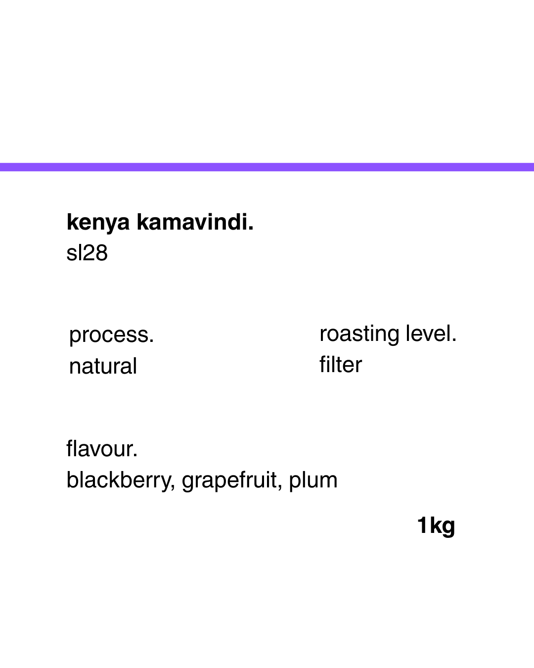 Vivid and fruit-driven. From Peter Mbature’s Kamavindi estate in Embu County, this rare natural-processed Kenyan showcases a more opulent expression of the classic SL varieties. Juicy blackberry and ripe plum lead the cup, lifted by candied grapefruit acidity and finishing with a long sweetness reminiscent of rooibos tea. Complex, vibrant, and lingering.
